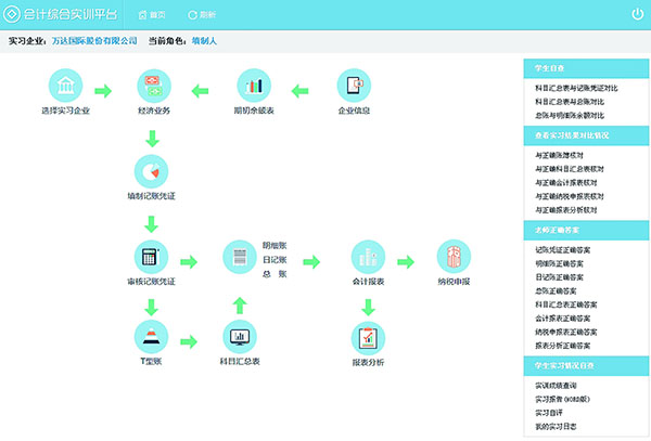 本系统平台预置了不同规模、不同行业、不同增值纳税人的核算方法,包括大、中、小型工业企业和商品流通企业等,具有营改增特色的交通 运输行业,执行《企业会计准则》或者《小企业会计准则》。学生通过实训,能够系统地认识典型性行业的账务处理及纳税申报的流程。