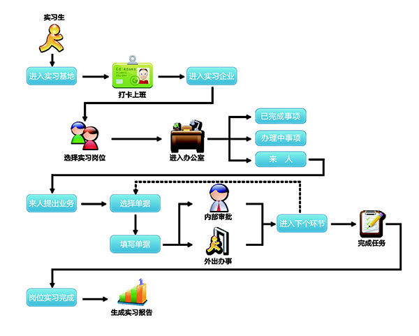 《会计虚拟实习平台》是为即将走向社会的财会专业学生量身订制的一套财会教学软件。作为行业首创,该平台将3D动画技术融入财会教 学,仿真职业场景,让学生足不出户即可亲身体验各类财会实务工作,熟悉企业内部的整体业务流程、内部控制、账务处理等,全面提升学生对企 业财会实务环境、业务流程、内部控制、角色分工、财务工作的认知及沟通管理技巧。从而,充实高校院所实务教育,彻底解决财会学生实习难的 困境,为学生与社会搭建了一座无缝对接的桥梁。