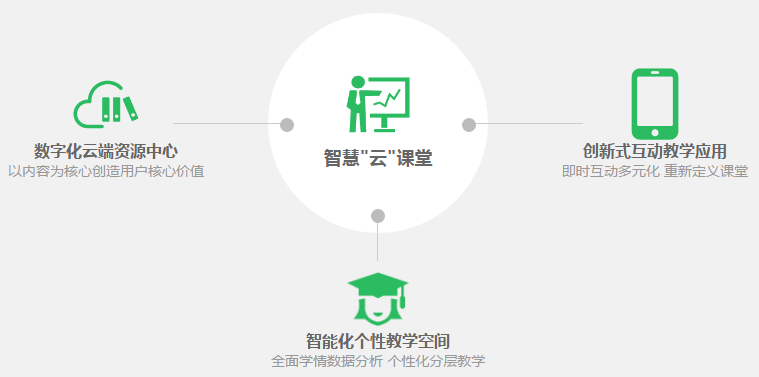 “智慧云课堂”教师也可以将自己的备课资料存放到云平台上来满足授课需求。学生也可以在自己移动终端(手机/平板电脑)上安装“智慧云课堂”学习端APP,学生可以自行分组讨论教学问题,也可以与教师进行教学互动,灵活的教学方式和即时的数据分析使整个教学更加生动,学生更易及时掌握课堂知识。 根据学习分析报告,系统会推荐相应的知识点讲解和强化学习建议,为学生自动生成强化学习“练习本”及复习“错题本”,为学生提供一个清晰的学习提升通道。