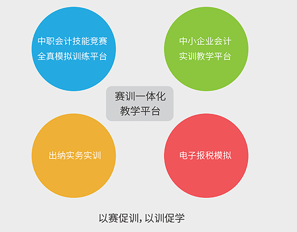 《中职赛训一体化》是一款用于财会专业教师日常实训教学,全面提升学生 职业能力,同时帮助学生备战中职省赛、国赛的教学平台。该平台不仅依据国赛 大纲编制了丰富的题库,还提供专项岗位实训。借助该平台,老师可以事半功倍 地指导学生进行模拟实训,夯实专业技能;帮助学生熟悉省赛、国赛竞赛平台, 掌握不同题型的做题技巧,提高学生审题能力及解题速度;帮助学生分析得失, 制定行之有效的得分策略;更全面、科学地检验考核学生所学,帮助学生融会贯 通所学,系统地掌握企业会计核算的全过程。从而,助力学生游刃有余地备战中 职省赛、国赛,以赛促训,以训促学,全面提升学生的财会素养。